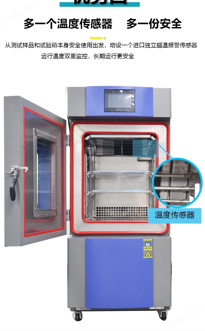 主要适用于科研研究、医疗用品的保存、生物制品、电子元器件、化工材料等特殊的高低温试验以及储存.高低温箱安全门锁设计,防止随意开启.温度范围根据客户要求定做.低达-70度。温湿度交变试验箱又名环境测试试验机,试验各种材料耐热、耐寒、耐干、耐湿性能。适合电子、电器、食品、车辆、金属、化学、建材等工厂之用。通过加速老化过程,模拟长期使用后的材料疲劳(如塑料脆化、金属膨胀系数差异导致的松动),提前发现潜在故障点。