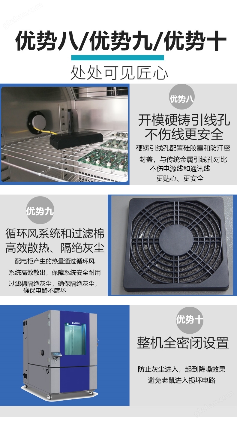 主要适用于科研研究、医疗用品的保存、生物制品、电子元器件、化工材料等特殊的高低温试验以及储存.高低温箱安全门锁设计,防止随意开启.温度范围根据客户要求定做.低达-70度。温湿度交变试验箱又名环境测试试验机,试验各种材料耐热、耐寒、耐干、耐湿性能。适合电子、电器、食品、车辆、金属、化学、建材等工厂之用。通过加速老化过程,模拟长期使用后的材料疲劳(如塑料脆化、金属膨胀系数差异导致的松动),提前发现潜在故障点。