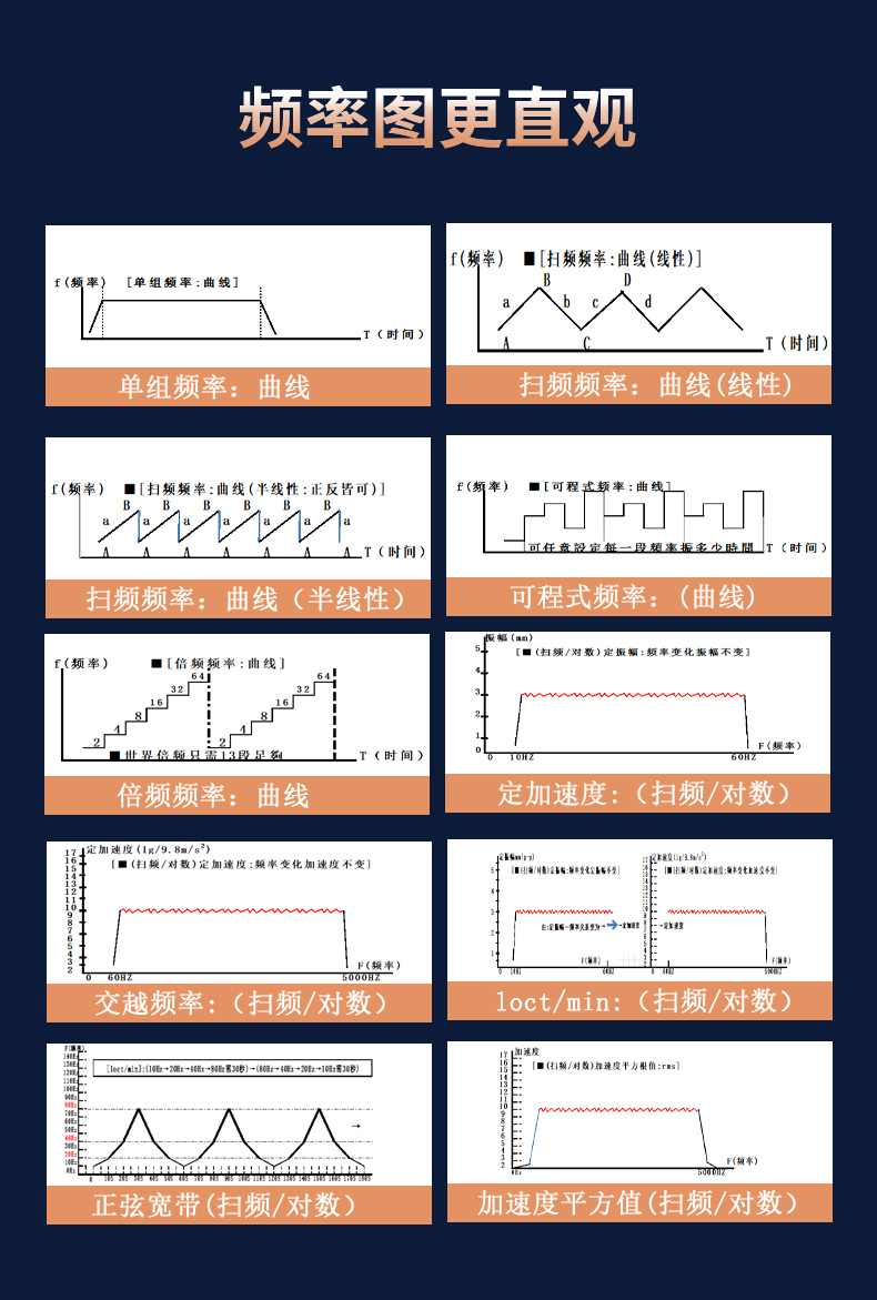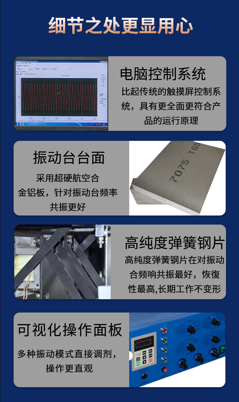 主要应用于航天、航空、兵器、船舶、汽车、通讯、家电、电子、科研院校等领域。是在实验室内反映被测件在运输和实际工作环境中对振动环境变化的适应性,暴露产品的缺陷,是新产品研制、样机试验、产品合格鉴定试验全过程等不可少的重要试验手段。总而言之,本系列的电磁式振动台,就是寻找产品的破坏点(故障点)。本套勤卓品牌电磁式振动台是常规性质的可靠性环境试验设备,可进行试验种类包括:正弦波振动、随机波振动、典型冲击、谐振搜索与驻留。后期可增加正弦加随机、随机加随机、正弦加随机加随机、路谱仿真、冲击响应谱、瞬态冲击等。本套勤卓品牌电磁式振动台由振动台体、工控系统和振动台控制分析系统三大部分组成。市场核心理念:精密执行各项振动指标,高度还原振动环境,同时以高性价比让每一个用户开展振动试验。